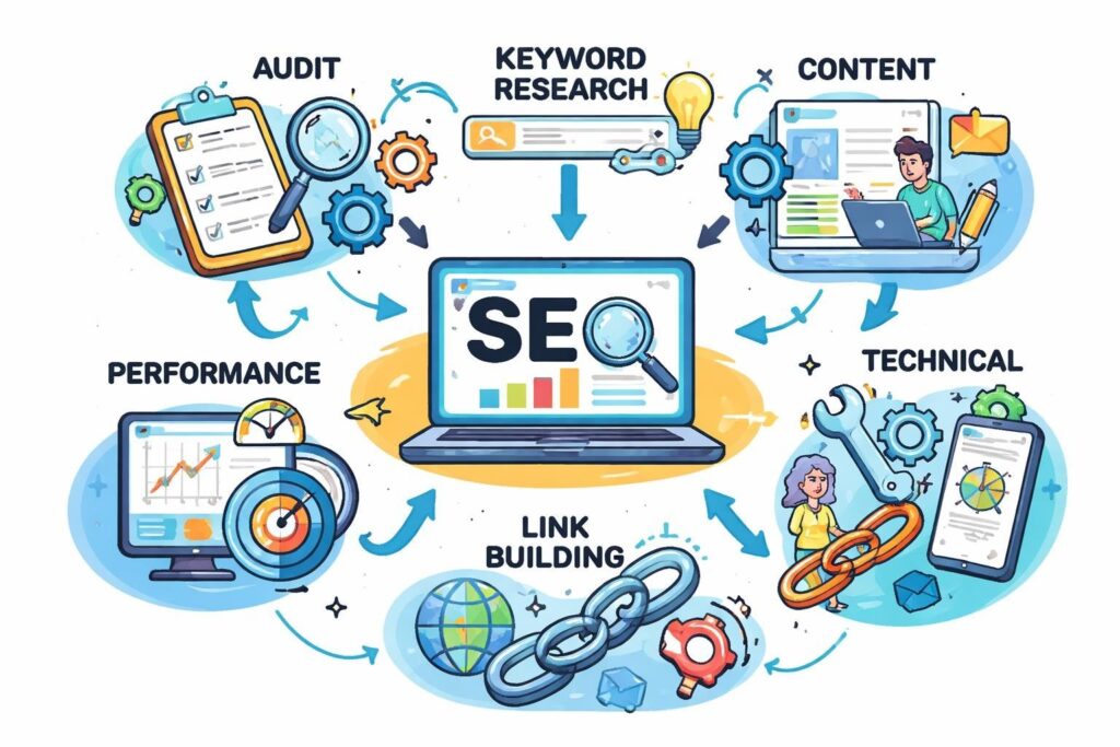SEO (Search Engine Optimization) is the process of improving your website so it ranks higher in search engine results, making it easier for potential customers to find your business online. Without SEO, even the best-designed website can be virtually invisible to your ideal audience.